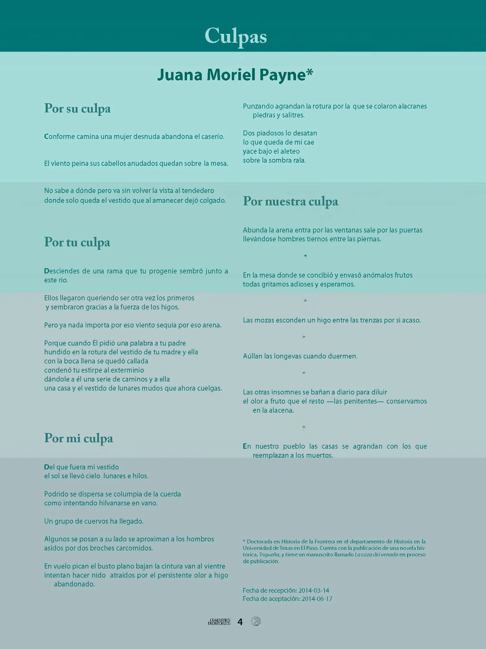 La caza del venado Trigueña-Interview / An Excerpt An Excerpt from Stag´s House Tremendisma, mayo 2025 Parteaguas: A Story and Poems Desacierto y Otros Poemas Estampida y Otros Poemas Culpas- Cuadernos Fronterizos -2014 I too am a border woman- a Memoir Excerpt I too am a border woman- a Memoir Excerpt I too am a border woman- a Memoir Excerpt The GroundUp Publication, May 2022